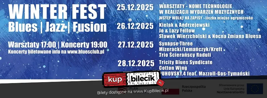 Tricity Blues Syndicate (PL) to mocne, bezkompromisowe bluesowe uderzenie z Trójmiasta - zespół, który łączy klasyczny, surowy charakter bluesa z rockową dynamiką i sceniczną pewnością. Na ich koncertach nie ma miejsca na półśrodki. Jest energia, szczerość i puls, który trafia prosto do serca każdego, kto kocha bluesowe brzmienie oparte na emocji. Twórczość grupy wyróżnia się wyrazistym, "miejskim" tonem - pełnym drive'u, przesterów i harmonijkowych dialogów. To muzyka, która idzie do przodu, ale z pełnym szacunkiem dla tradycji gatunku. Zespół tworzą doświadczeni muzycy znani z trójmiejskiej sceny: