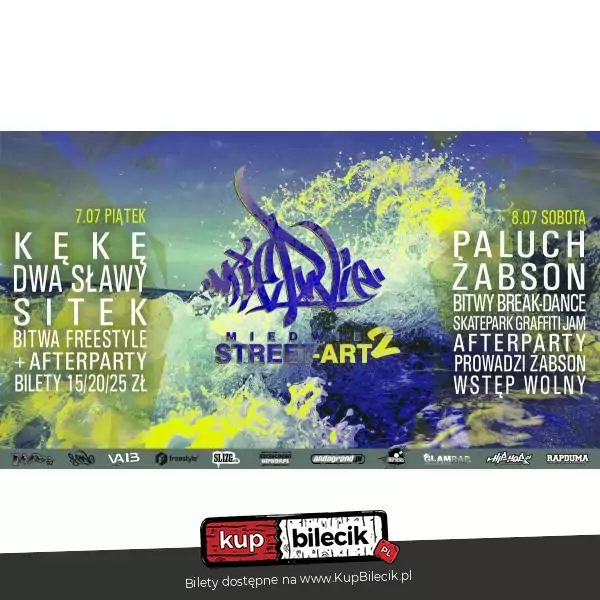 Miedwie Street-Art vol. 2 - Dwa dni hip-hopu najwyższych lotów w Morzyczynie nad jeziorem Miedwie. W pierwszej edycji Miedwie Street-Art wzięło udział ponad 120 młodych artystów, tancerzy i sportowców. Jedno jest pewne, druga edycja przebije pierwszą pod każdym względem. Na festiwal składają się dwa dni koncertów i wydarzeń towarzyszących. Baza noclegowa nad jeziorem Miedwie może nie wytrzymać oblężenia, dlatego już radzimy rezerwować camping.