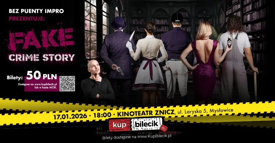 Wejdź w mroczny świat zbrodni, tajemnic i intryg! Fake Crime Story to spektakl w formie kryminalnego podcastu na żywo - pełen napięcia, niespodziewanych zwrotów akcji i historii, które powstają na Waszych oczach.