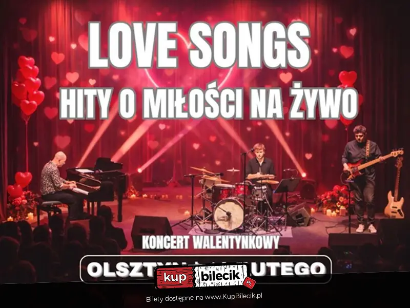 Zapraszamy na wyjątkowy walentynkowy wieczór z muzyką na żywo. Love Songs - Hity o Miłości na Żywo to kameralny koncert oparty na najbardziej rozpoznawalnych utworach inspirowanych miłością, bliskością i emocjami - zagranych w nastrojowych, eleganckich aranżacjach.