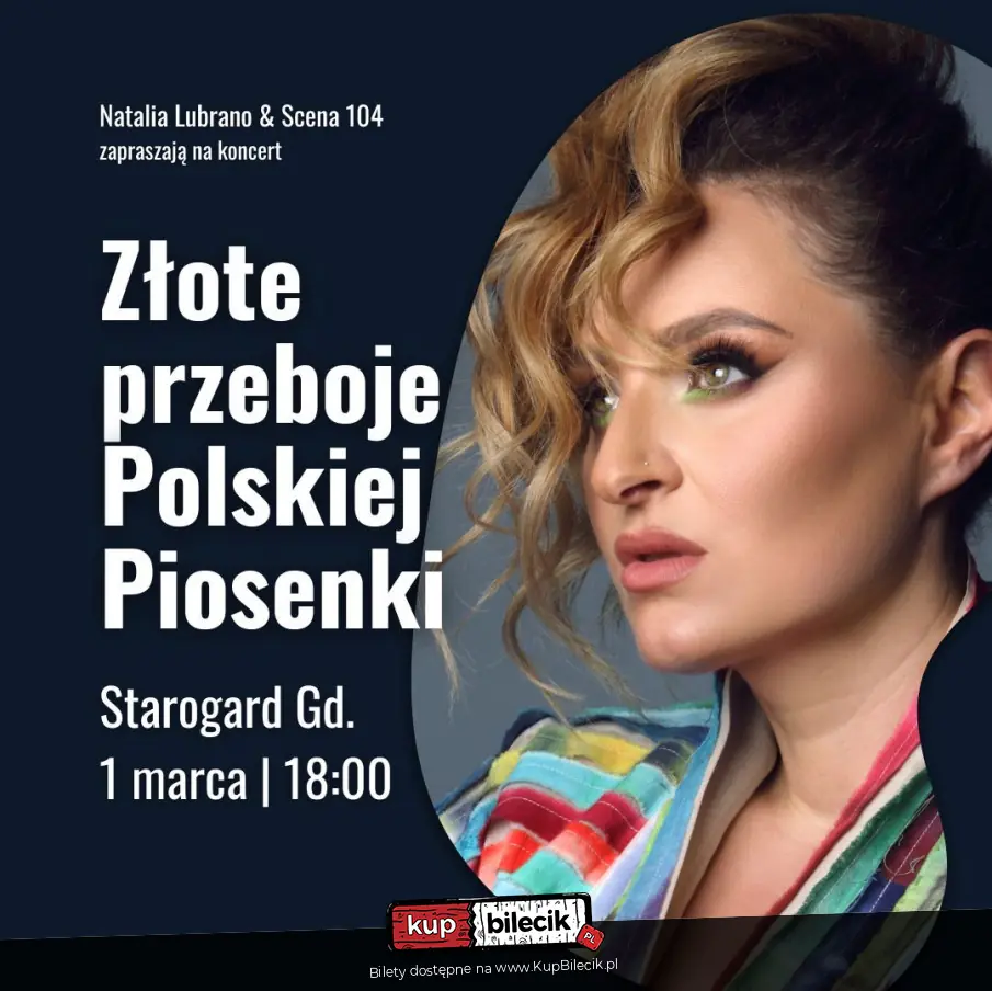 Nie trzeba wehikułu czasu, by wrócić do złotych lat polskiej piosenki - wystarczy przyjść na koncert ZŁOTE PRZEBOJE POLSKIEJ PIOSENKI. Za sprawą wyjątkowego głosu Natalii Lubrano, laureatki nagrody specjalnej jury Festiwalu Piosenki Aktorskiej we Wrocławiu, uczestniczki programu The Voice of Poland, oraz niezwykle utalentowanych muzyków Sceny Osobistej przeniesiemy się do świata melodii, które wszyscy dobrze znamy i kochamy. Wśród utworów usłyszycie perełki z repertuaru Agnieszki Osieckiej, Marka Grechuty, Anny Jantar, Czesława Niemena, Eugeniusza Bodo, Violetty Villas i wielu innych. Będą też muzyczne niespodzianki, które wywołają uśmiech i wzruszenie.