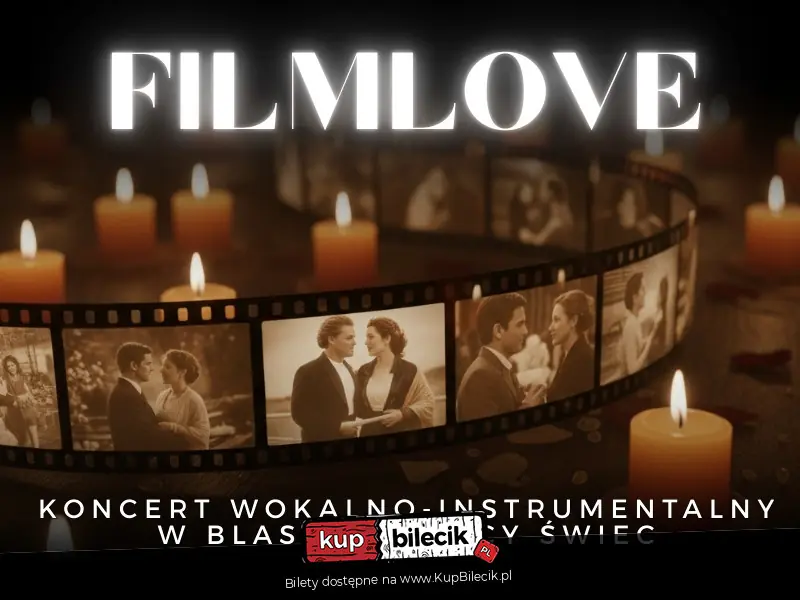 FilmLove to klimatyczny koncert, podczas którego największe przeboje muzyki filmowej zabrzmią w nastrojowych, akustycznych aranżacjach. Blask tysięcy świec, wyjątkowa atmosfera i poruszające wykonania sprawią, że na chwilę przeniesiesz się do świata kina i poczujesz jak bohater ulubionej filmowej historii miłosnej.