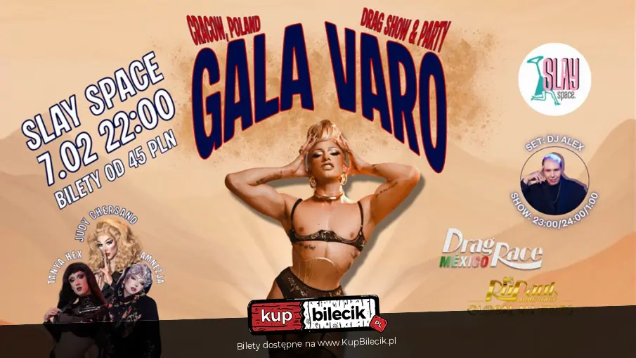 Z ogromną przyjemnością ogłaszamy, że już 7.02.2026 roku na różowej barce w Slay Space w Krakowie wystąpi prawdziwa gwiazda światowego formatu - Gala Varo! Nie kto inny jak wicemistrzyni "Drag Race México" i uczestniczka "RuPaul's Drag Race Global All Stars". To jedyna okazja w Polsce, by zobaczyć tę niesamowitą artystkę w akcji! Prosto z Meksyku na naszą różową barkę! Przygotujcie się na wieczór pełen emocji, spektakularnych występów i niezapomnianej energii. Kraków to jedyne miasto w Polsce, które ponownie odwiedzi Gala Varo podczas swojej europejskiej trasy, więc nie możecie tego przegapić - jesteśmy zaszczyceni że zagości ponownie na scenie w Slay Space! Bądźcie z nami i przeżyjcie coś, o czym będzie się mówić przez kolejny rok!