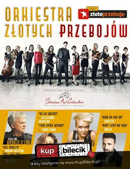Nazwa projektu ogólnopolskiej trasy koncertowej "Orkiestra Złotych Przebojów" mówi sama za siebie, ponieważ repertuar koncertów umiejętnie łączy rock, pop, a nawet współczesne brzmienia. Znakomita Orkiestra Kameralna > pod dyrekcją Mateusza Walacha nada wykonywanym utworom wyjątkowego formatu.