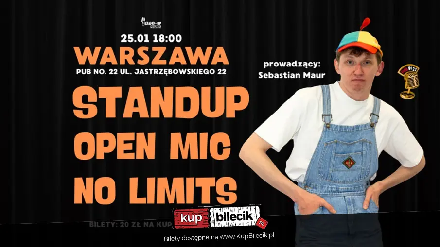 Stand-up Open Mic No Limits czyli: zaawansowani i początkujący komicy opowiedzą nowe bądź ulepszone żarty. Idealna środa gwarantowana! Na takich wydarzeniach zobaczycie nie tylko nowicjuszy ze świeżym spojrzeniem na komedię, ale i rasowych wyjadaczy. Na tego typu wydarzeniach często pojawiają się również czołowi i najbardziej znani komicy.