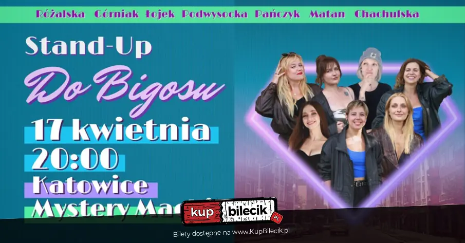 Wieczór Komediowy z całkowicie kobiecym składem - przekornie nazwanym "Do Bigosu!" Nowy sezon, nowe żarty! Komiczki, które będą Was rozśmieszać to jedne z najbardziej różnorodnych i fascynujących kobiecych głosów, które wnoszą na scenę świeżą i niepowtarzalną perspektywę.