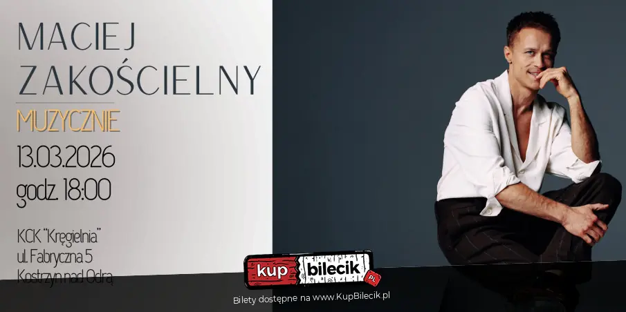 Zapraszamy na niezwykły koncert, który pokaże Macieja Zakościelnego w zupełnie nowej roli. Tym razem znany i lubiany aktor wystąpi jako wokalista, zabierając publiczność w stylową, jazzowo-swingową podróż pełną emocji i ponadczasowych melodii. "Maciej Zakościelny muzycznie" to wieczór pełen klasy, nastroju i dobrej energii. W repertuarze usłyszymy m.in.: "Fly Me To The Moon", "Yesterday", "Jej portret", "Kocham Cię, Kochanie Moje" oraz inne muzyczne perełki. Idealna propozycja na celebrację Tygodnia Kobiet.