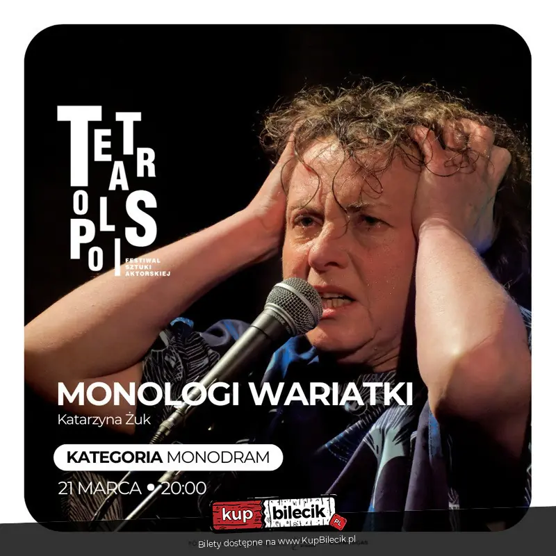 Monologi wariatki: "Przedstawienie jest performatywnym monologiem kobiety, artystki, Polki cierpiącej na schizofrenię, walczącej ze stygmatyzacją społeczną i artystyczną. Taka stygmatyzacja i wykluczenie na poziomie społecznym i interpersonalnym skutkuje izolacją, ograniczeniem zawodowym, towarzyskim i rodzinnym. Osoby chore psychicznie postrzegane są jako groźne i nieprzewidywalne, małowartościowe i bezużyteczne, budzą lęk i są obiektami licznych uprzedzeń. W spektaklu tytułowa Wariatka, ale jednocześnie aktorka, Katarzyna Żuk opowiada lub, można rzec, obie opowiadają (będąc w stałej i bezpośredniej konfrontacji z widzami) o codziennych zmaganiach z chorobą psychiczną, o walce artystki o uznanie i akceptację, o zderzeniu z systemem i wymogami obowiązującymi w dzisiejszym świecie, który odrzuca i nie znosi inności. Inscenizacja spektaklu zawiera elementy performansu, sztuk audiowizualnych, AI, improwizacji, tańca, kierując się dewizą Schopenhauera "aby sztuka podsuwała naszym zmysłom nie wszystko, ale to tylko, co nada właściwy kierunek wyobraźni, oddając jej właśnie ostatnie słowo." Spektakl powstał na podstawie prozy Aleksandry Młynarczyk - Gemzy pt. "Zapiski wariatki" nominowanej do Nagrody Literackiej Nike i Nagrody Conrada".