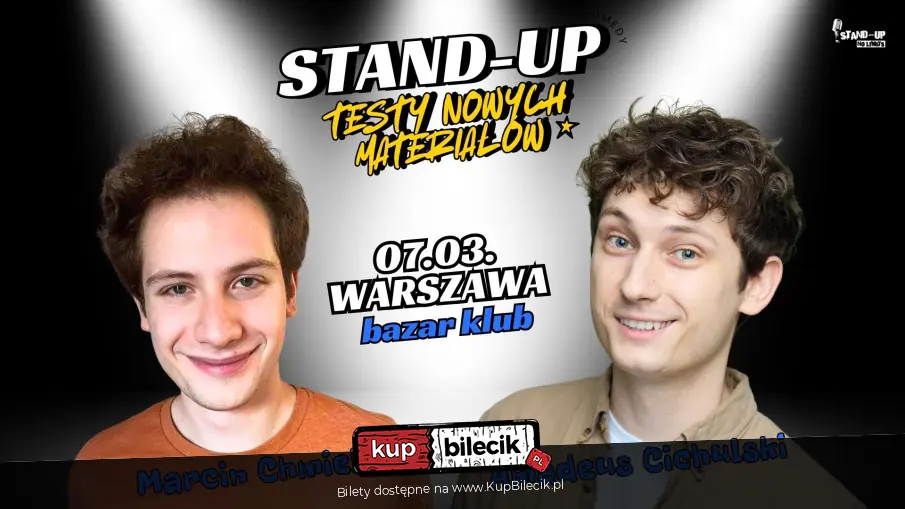 Marcin Chmiel i Amadeus Cichulski - standuperzy znani z programu Masz Minutę, wspólnego podcastu i licznych występów w programach komediowych na YouTubie - łączą siły w projekcie, który aktualnie jest w fazie testowej. To specjalne, pilotażowe wydarzenie ma na celu przetestowanie nowej formuły duetu, świeżych fragmentów programów oraz improwizowanej części finałowej przed dalszym rozwinięciem projektu. Publiczność bierze udział w procesie twórczym - reakcje, energia i odbiór wieczoru będą realnie wpływać na ostateczny kształt ich programu.
