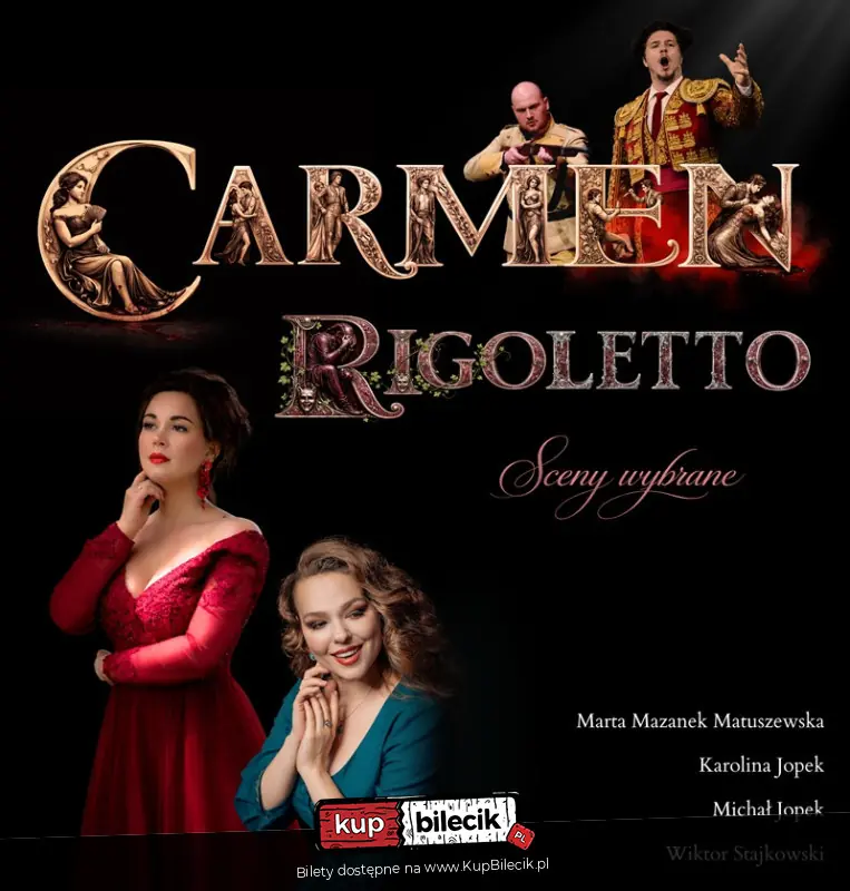 Zapraszamy na wyjątkowy wieczór z muzyką operową, podczas którego rozegrają się najbardziej poruszające i dramatyczne sceny z dwóch światowych arcydzieł: Carmen (G. Bizet) oraz Rigoletto (G. Verdi).
