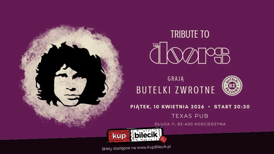 Zapraszamy na wyjątkowy koncert będący hołdem dla jednego z najbardziej legendarnych zespołów w historii rocka. "Tribute to The Doors" to projekt artystyczny stworzony przez szóstkę muzyków z Bydgoszczy, których połączyła wspólna fascynacja twórczością zespołu i chęć oddania jej scenicznego ducha. Muzyka The Doors była niepowtarzalną mieszanką rocka, psychodelii, bluesa i poezji. Pełna chaosu, hipnotyzującej energii i jednocześnie niezwykłej harmonii. Do dziś inspiruje kolejne pokolenia artystów i fanów na całym świecie.