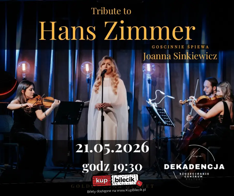 Zapraszamy na wyjątkowy wieczór muzyczny, podczas którego klasyczna elegancja kwartetu smyczkowego spotka się z filmową nostalgią. W programie koncertu znajdą się najpiękniejsze i najbardziej poruszające kompozycje Hansa Zimmera - jednego z najwybitniejszych twórców muzyki filmowej naszych czasów. Tego wieczoru będzie można usłyszeć między innymi muzykę z filmów takich jak: Gladiator, Incepcja, Interstellar, Król Lew, James Bond czy Piraci z Karaibów.
