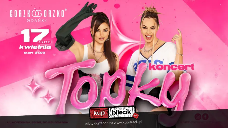Szykujcie się na najbardziej roztańczony Piątek tej wiosny! Już 17 Kwietnia na scenie Gorzko Gorzko Gdańsk wystąpi duet, który zdominował polskie parkiety i listy przebojów - TOPKY! Kim są nasze gwiazdy?