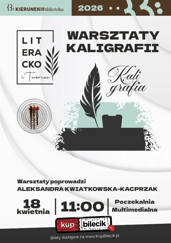 Zapraszamy na Warsztaty Kaligrafii w ramach cyklu "Literacko i twórczo". Każdy będzie miał okazję spróbować swoich sił w sztuce pięknego pisania, poznać podstawy kaligrafii i spędzić czas w twórczej, spokojnej atmosferze. Warsztaty poprowadzi Aleksandra Kwiatkowska-Kacprzak. Do zobaczenia w bibliotece!