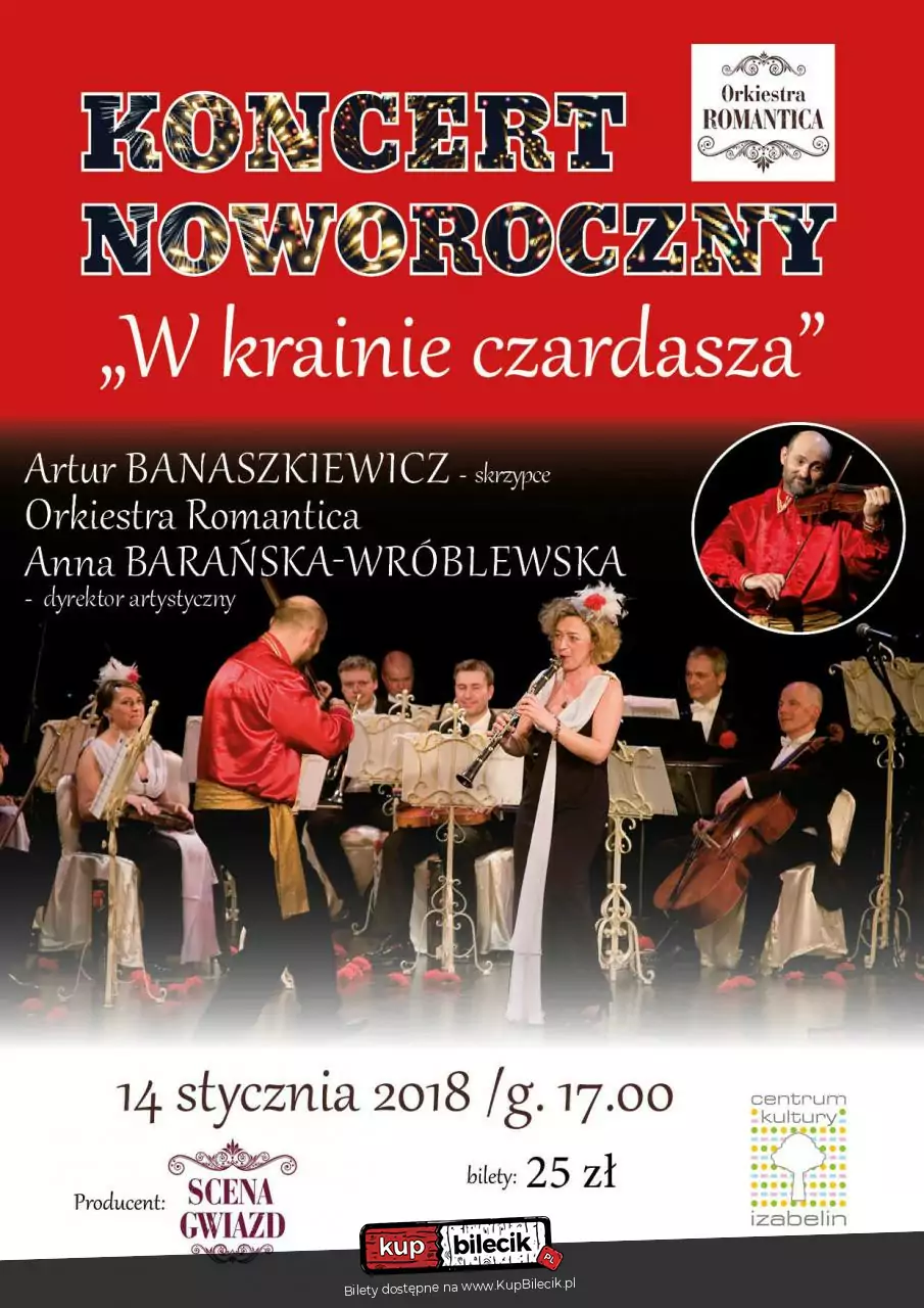 Serdecznie Państwa zapraszamy na Koncert Noworoczny pt. " W krainie czardasza". Gwiazdą wieczoru będzie Artur Banaszkiewicz- wirtuoz skrzypiec, kompozytor, aranżer i niezwykły showman, który sam oprowadzi publiczność po krainie czardasza i cygańskich szlagierów.