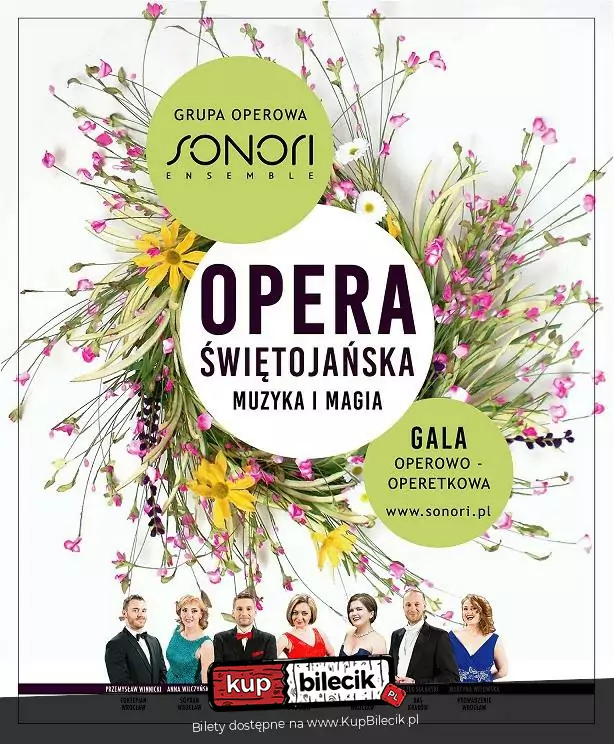 "Opera Świętojańska", czyli noc, kiedy muzyka ma niezwykłą moc... Noc Świętojańska zwana wcześniej Nocą Kupały, to święto nie tylko sięgające głęboko w obyczaje słowiańskie, ale zawierające też pierwiastki celtyckie, germańskie i indoeuropejskie. Obchodzone w okresie letniego przesilenia, było świętem jedności, połączenia ognia i wody, urodzaju, miłości i radości, pełnym magii i wróżb. Program koncertu "Opera Świętojańska" obejmuje wyjątkowe arie, duety i ansamble operowe oddające niepowtarzalny nastrój tej wyjątkowej nocy, w której spotykają się żywioły wody i ognia, a szczęście w miłości przynieść ma upragniony kwiat paproci... Wieczór uzupełniają kompozycje o tematyce miłosnej z najsłynniejszych oper i operetek oraz repertuar neapolitański, nie zabraknie także wirtuozowskich popisów pianistycznych, a całość ubarwi słowo wiążące. Wystąpią przed Państwem znakomici artyści - soliści scen operowych i laureaci międzynarodowych konkursów wokalnych z Pragi, Krakowa i Wrocławia. Opera Świętojańska to wieczór pełen muzyki, magii i miłości! Serdecznie zapraszamy!