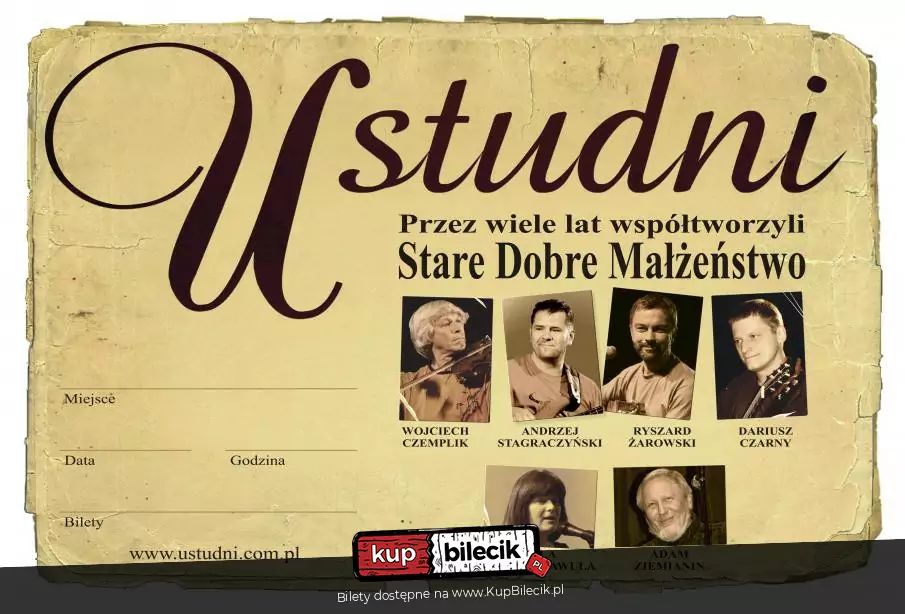 "Wspaniały koncert, świetna atmosfera, zapomniałam o wszystkich problemach. Muzyka, aranże, teksty na najwyższym poziomie. Uczta dla ucha a przede wszystkim dla ducha. Gitary i skrzypce - mistrzostwo świata. Polecam wszystkim, którzy potrzebują przenieść się na chwilę i w inną rzeczywistość i delektować się pięknem w czystej postaci, to najlepsze spa dla ducha. Pozdrawiam cały Zespół U studni. Byłam na koncercie w Przemyślu. Dziękuję :)"