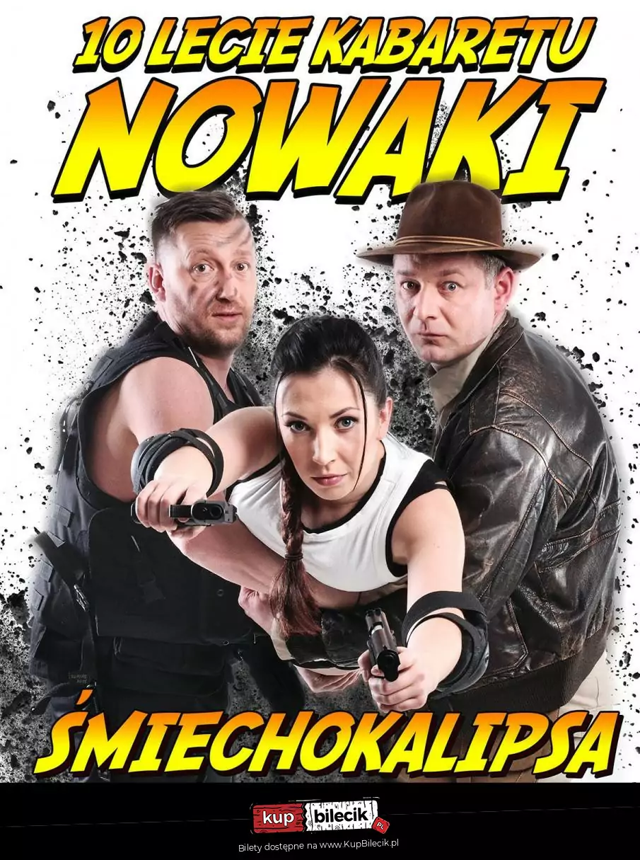 Ta przygoda trwa już 10 lat! Kabaret Nowaki dokładnie od dekady bawi fanów dobrej rozrywki. Niezliczone spektakle i programy telewizyjne to doświadczenie, które pozwala na określenie Nowaków mianem ekspertów w dziedzinie śmiechu i żartu. Świętując swój jubileusz Nowaki wyruszają w zupełnie nową przygodę, w którą zabiorą ze sobą publiczność. Nowe perypetie znanych już postaci. Ulubieni bohaterowie w absolutnie zaskakujących sytuacjach - pani Krystyna i Martynka, a także inne nieznane jeszcze wcielenia Ady Borek. Wraz z Kamilem Pirógiem i Tomkiem Marciniakiem w premierowym programie pokażą wszystkie kabaretowe oblicza, które zaskoczą nawet tych, którzy myślą, że znają Nowaków na wylot. Przeżyj kabaretowy koniec świata! Przez niemal dwie godziny Śmiechokalipsy na scenie Nowaki z siłą Commando, przebojowym urokiem Lary Croft i błyskotliwą mądrością Indiany Jonesa zabiorą Was z nieznane dotąd rejony rozrywki. To zupełnie nowa era kabaretu, w której Nowaki wyznaczą najlepsze standardy. Weź udział w niezwykłej kabaretowej podróży u boku mistrzów żartu.