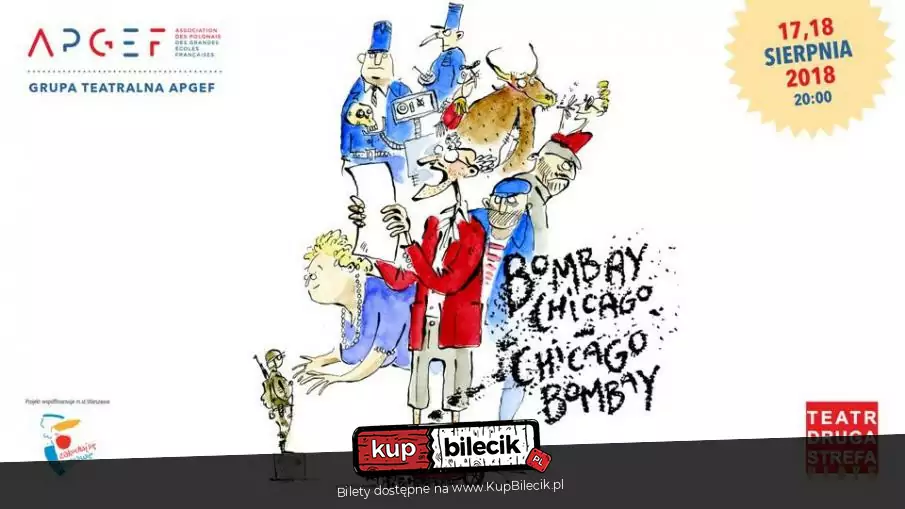 Uwaga! Uwaga! Za 5 minut, za 5 minut odjazd słynnego pociągu. BOMBAY-CHICAGO, CHICAGO-BOMBAY! Uwaga! Wszystkie miejsca zarezerwowane! Proszę zajmować miejsca! Za 4 minuty odjeżdżamy! Pociąg nasz przejeżdża kontynenty i oceany. Panie i Panowie! Podziwiajcie program nowego teatru! Najbardziej sensacyjne WIDOWISKO epoki: "Bombay-Chicago, Chicago-Bombay"!