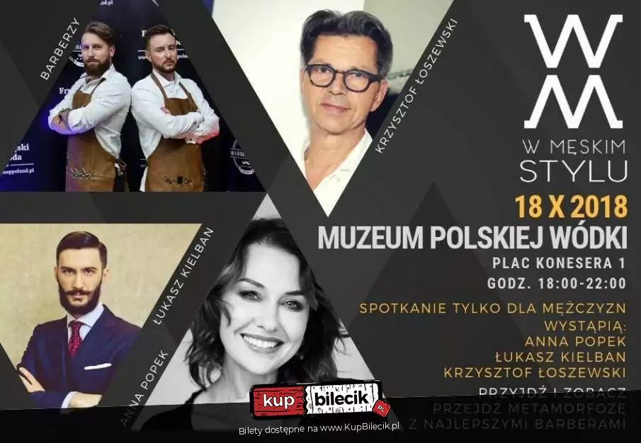 Nigdy nie ustawaj w drodze do doskonałości- weź udział w spotkaniu dla prawdziwego mężczyzny. Co Cię tu czeka? Ekspert w dziedzinie savoir-vivre Łukasz Kielban, wybitny znawca mody męskiej Krzysztof Łoszewski oraz barberzy z Barber Shop Poland: Roman Tomaszewicz i Mariusz Bassa w ciekawych architektonicznie wnętrzach Muzeum Polskiej Wódki podzielą się swoją wiedzą i doświadczeniem. Każdy z Was ma klasę i charakter, a oni podpowiedzą wam jak ją wyeksponować. Jedynym kobiecym akcentem tego będzie prowadząca wieczór- Anna Popek.