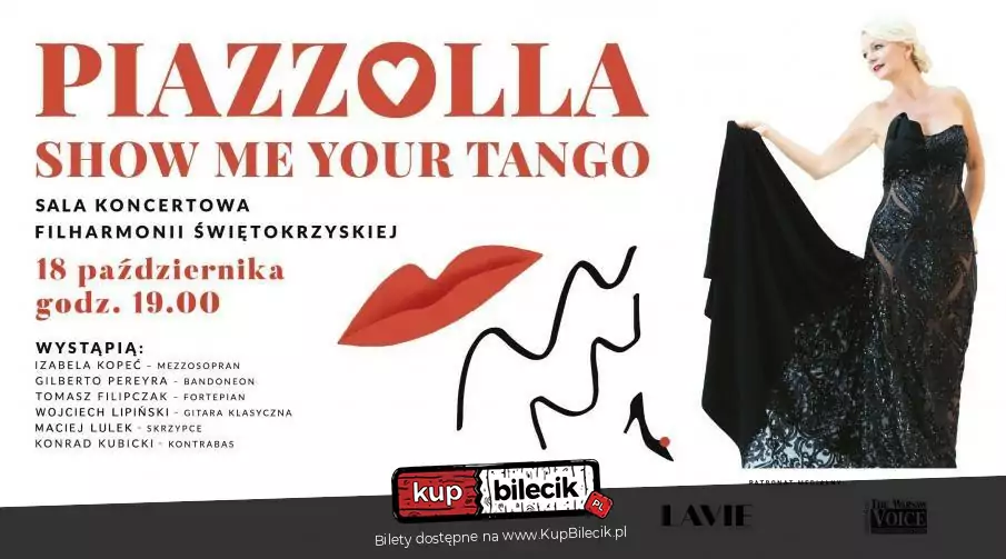 Izabela Kopeć wystąpi z recitalem pieśni Astora Piazzolli. Artyści, którzy towarzyszą solistce, to znakomici muzycy doskonale czujący styl tango nuevo. Miłośnicy muzyki klasycznej docenią między innymi transkrypcje na głos utworów takich jak np. "Oblivion", który oryginalnie skomponowany został jako utwór instrumentalny. "Piazzolla. Show Me Your Tango" to estetyczne tango do słuchania i snucia refleksji w dobrym towarzystwie przy wybornym winie. To podróż przez południowe krajobrazy pełne namiętnej miłości, wielkiej pasji, radości i beztroski ale też samotności i egzystencjalnego przeżycia. To także maestria wokalna Izabeli Kopeć, "W słodyczy anielskiego śpiewu pobłyskuje srebrna nić splatająca gwiazdy i słońca, i księżyce wszechświata razem z najdrobniejszymi zakończeniami nerwowymi naszych mięśni i ścięgien- które zapragną kołysania, drżenia i posuwistych piruetów argentyńskiej poezji tańca", podkreśla dr Ewa Woydyłło, która zdradziła swoją odwieczną miłość do tanga. Gościem specjalnym zaproszonym przez Izabelę Kopeć będzie genialny bandoneonista, Argentyńczyk Gilberto Pereyra, założyciel i członek wielu zespołów tangowych, który towarzyszył w trasach koncertowych legendarnej Milvie.