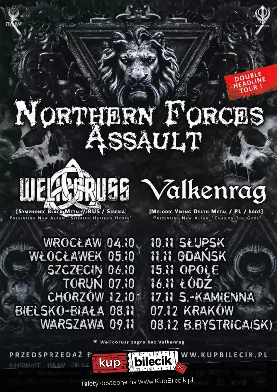 Welicoruss - grające symfoniczny metal bestie z Syberii są dobrze znane ze swoich niezaprzeczalnie dynamicznych, wręcz inferalnych występów na żywo, pięknej scenografii oraz powalającej muzyki wyróżniającej się spośród konwenansów gatunku. Podczas wizyty w Polsce zaprezentują swój nowy set składający się z utworów z ich nadchodzącego albumu "Siberian Heathen Horde", jednak nie zabraknie też najlepszych pozycji z ich dotychczasowej twórczości.