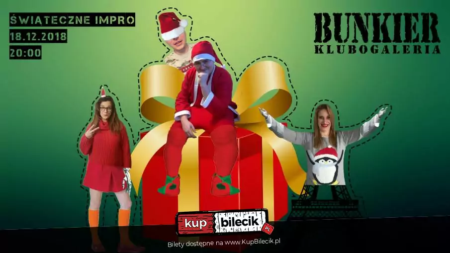 Święta tuż tuż! Piękny czas wypełniony radością, miłością i prezentami. I my właśnie to Wam proponujemy. Zróbcie sobie prezent, i dajcie radość sobie i najbliższym. Jak, zapytacie? Wbijając na występ i śmiejąc się do rozpuku! Czym jest improwizacja teatralna/sceniczna/komediowa/kabaretowa? Tworzeniem czegoś z niczego, spektakularną wędrówką w nieznane, zwycięstwem umysłu nad materią, ale przede wszystkim interaktywnym widowiskiem, w którym to publiczność ustala zasady, a improwizatorzy oddają się bezkresnej radości tworzenia. Efektem jest występ, który powstaje na poczekaniu i bawi, wzrusza, zachwyca! Nie ma scenariusza, jest tylko tu i teraz, Wy i my, śmiech i łzy!