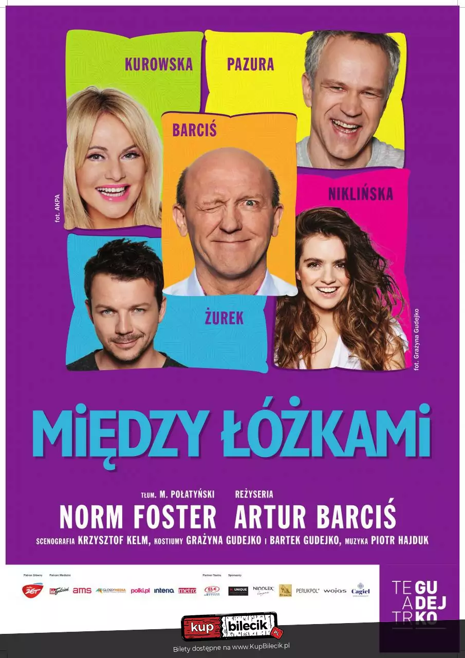 "Między łóżkami", to inteligentna komedia Norma Fostera składająca się z sześciu epizodów, które przedstawiają zabawne, ale również wzruszające losy mieszkańców prowincjonalnego miasteczka w Kanadzie. Wszystko dzieje się w ciągu dwóch godzin, choć w sześciu różnych pokojach, w których głównym meblem jest łóżko. Para 50-latków godzących się uprawiać sex na antenie radiowej, włamywacze zawodowiec i amator-księgowy, starzejąca się gwiazda rocka Tommy Quick i jego młodociana fanka pragnąca przeżyć z nim ten pierwszy raz, szef clubu go-go, który musi zwolnić nieudolną striptizerkę, taksówkarka bez zmysłu orientacji w terenie i inni. W sumie 15 postaci granych brawurowo przez piątkę znakomitych aktorów. Doskonała zabawa, ale również refleksja i wzruszenie. Po prostu dobry teatr.