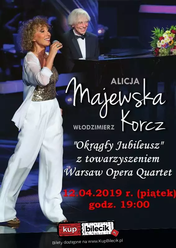 "Okrągły Jubileusz" to wydarzenie, które odbędzie się z udziałem Włodzimierza Korcza - wybitnego pianisty, kompozytora i autora muzyki większości piosenek Alicji Majewskiej, oraz Warsaw Opera Quartet.