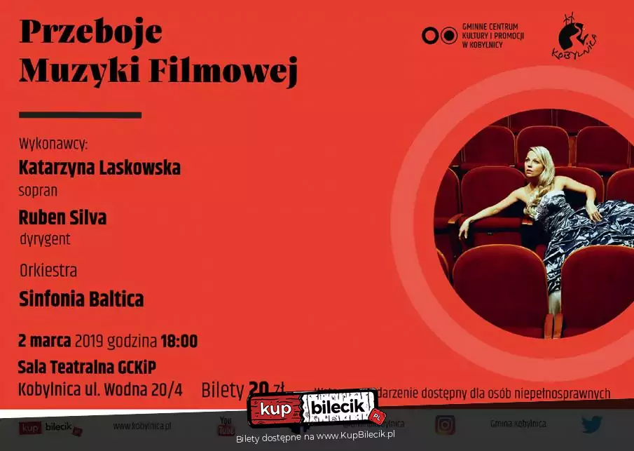 Największe przeboje muzyki filmowej usłyszymy w trakcie koncertu, który organizuje Gminne Centrum Kultury i Promocji w Kobylnicy we współpracy z Polską Filharmonią Sinfonia Baltica w Słupsku pod batutą Rubena Silvy. Motywy z takich hitów jak Jurrasic Park, Maska Zorro, Piraci z Karaibów, Ogniem i Mieczem czy całej sagi opowiadającej przygody słynnego Agenta 007 wykonają Katarzyna Laskowska (sopran) wspólnie z Orkiestrą Sinfonia Baltica, której dyrygentem jest Ruben Silva.