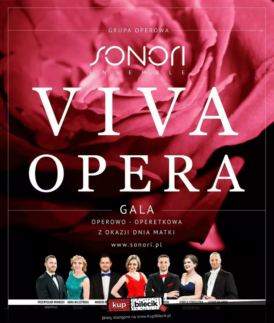 VIVA OPERA - Gala Operowo-Operetkowa to barwny, dynamiczny i emocjonujący wieczór operowo-operetkowy przygotowany specjalnie z okazji Dnia Matki. Przewodnim tematem koncertu jest miłość i jej rozmaite odcienie, ukazane przez najsłynniejszych kompozytorów scenicznych. W programie nie zabraknie zatem lirycznych romansów, arii, duetów i scen miłosnych, brawurowych i efektownych popisów wokalnych oraz odrobiny subtelnego dowcipu. Śpiewacy Grupy Operowej Sonori Ensemble z Pragi, Krakowa i Wrocławia zaprezentują ponadczasowe przeboje operetkowe oraz arie, duety i sceny operowe z dzieł najsłynniejszych kompozytorów m. in. Mozarta, Rossiniego, Verdiego, Pucciniego, Delibesa, Gounoda, Offenbacha, Straussa, Kalmana i innych. Wystąpią przed Państwem znakomici i uznani artyści operowi, soliści polskich i zagranicznych scen operowych, nagrodzeni na wielu międzynarodowych konkursach wokalnych. Nie zabraknie także wirtuozowskich popisów pianistycznych. Całość wieczoru ubarwi słowo o muzyce, opowiedziane w niekonwencjonalny sposób. Zapraszamy na niepowtarzalny wieczór operowy pełen emocji i uczuć w towarzystwie wspaniałych głosów!