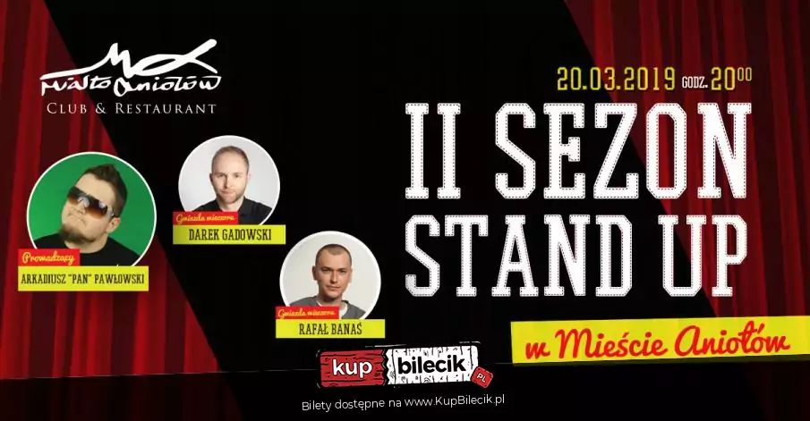 Rafał Banaś - Komik aktywnie działający na polskiej scenie komediowej od 2013 roku. Jako stand -upper bawił w programach Kuba Wojewódzki w TVN, Świat się kręci oraz Tylko dla dorosłych w TVP2. Zwycięzca Festiwalu komedii "Szpak", Areny stand - upperów oraz trzykrotny finalista Antrakt stand - up festiwalu. Jego pierwszy program jest w całości dostępny na platformie Netflix. Należy do grupy Stand - up Skład. Brał udział w Wielkiej gali stand-upu i jest członkiem kanału 20 - stand upów. Podczas występów Rafał bez problemu nawiązuje kontakt z publicznością i swoimi historiami przenosi widownię do swojego świata w którym każdy z łatwością znajduje coś dla siebie. Poprzedni program "Strefa Komfortu" w całości dostępny na YouTube.