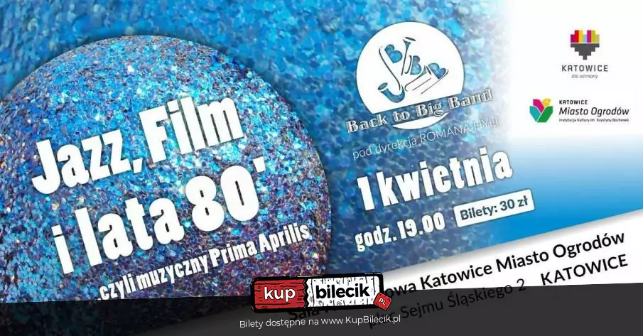 Jazz, Film i lata 80. czyli muzyczny Prima Aprilis w wykonaniu Back to Big Band. Założony przed niemal dekadą zespół pod dyrekcją Romana Hyli przedstawi wybuchową mieszankę muzyki lat 80., jazzu i motywów filmowych. W programie pełnego energii koncertu znajdą się m.in. ścieżka z filmu "Rocky" czy serii przygód Jamesa Bonda, hity lat 80. takie jak "Sunny" czy "YMCA". Nie zabraknie również polskich akcentów - motywów z seriali "Czterdziestolatek" czy filmu "Vabank".