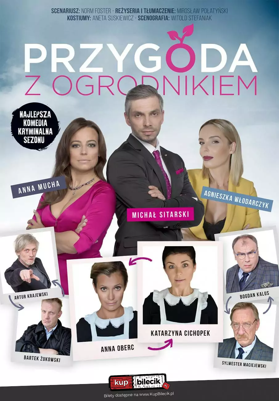 "Przygoda z ogrodnikiem" to czarna komedia z zaskakującą puentą, wybitnego kanadyjskiego autora - Norma Fostera. Znany jest on polskiemu widzowi z takich hitów scenicznych jak: "Między Łóżkami", "Ostra Jazda", "Old Love", czy "Randka w Ciemno na dwie pary". Para aktorów - Państwo Dzicy, po latach pracy w teatrze, porzucają ambicje i mizerne życie aktorów teatru objazdowego. Zostają ekspertami od samodoskonalenia osobowości i jeżdżą po świecie z szkoleniami motywacyjnymi. Kiedy są na szczycie kariery ich małżeństwo powoli się rozpada. Jaki udział ma w tym tytułowy ogrodnik Państwa Dzikich? - dowiecie się na spektaklu!