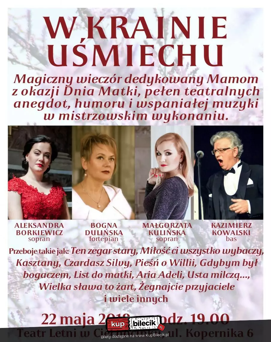 Magiczny wieczór dedykowany Mamom z okazji ,,Dnia Matki'' pełen teatralnych anegdot, humoru i wspaniałej muzyki w mistrzowskim wykonaniu gwiazd polskich scen operowych i operetkowych.