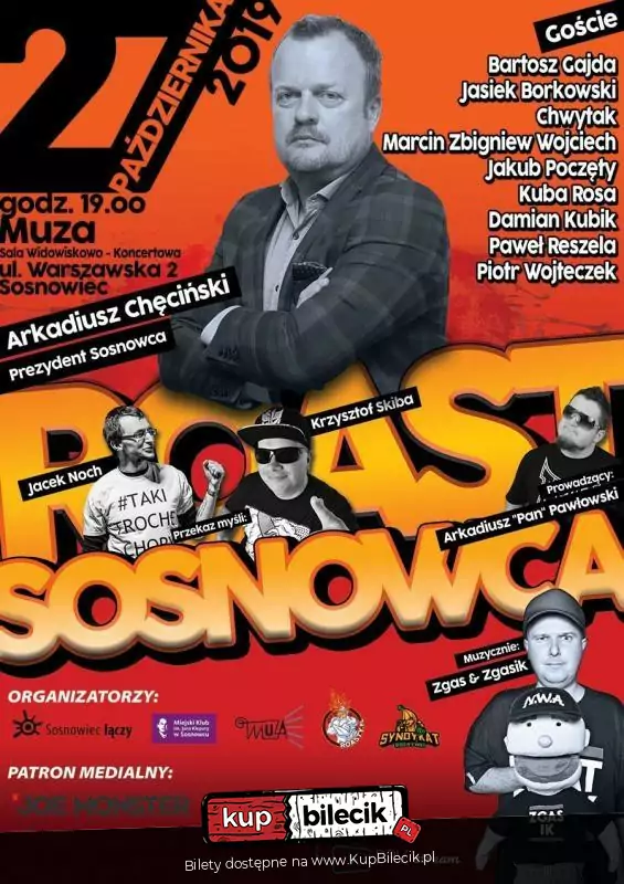 27 października 2019 o godzinie 19:00 w Sali Widowiskowo-Koncertowej Muza odbędzie się oficjalny Roast Miasta Sosnowiec. Honoru miasta bronić będzie jego najbardziej rozpoznawalna postać, sam Prezydent Arkadiusz Chęciński. Czy wyjdzie obronną ręką i pokaże właściwe miejsce wszystkim roastującym? Tego dowiemy się wkrótce. Ważne jednak, że Sosnowiec, jako pierwsze miasto stanie do walki o miano "Miasta z dystansem". Swój dystans udowodnił już wcześniej wprowadzając Paszporty do Sosnowca.