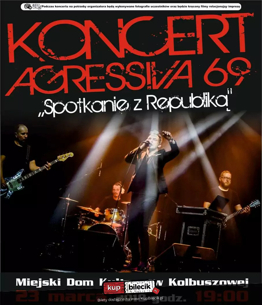 "Zaskakujący koncert w zaskakującym miejscu. Dom Kultury Kolbuszowa i potężna dawka adrenaliny w wykonaniu Agressiva 69. Warto było!!! Spotkanie z autorem książki Republika na wysokim poziomie. Po koncercie możliwość porozmawiania z muzykami. Super!"