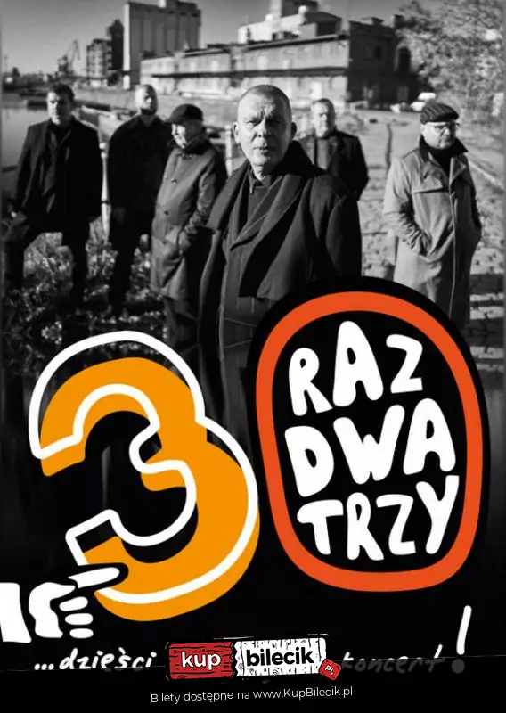 30 lat temu na korytarzu akademika w Zielonej Górze trójka młodych ludzi zagrała pierwsze wspólne dźwięki... i tak zaczęła się historia. Historia zespołu, który pozostał wierny sobie i swojej muzycznej drodze, konsekwentnie krocząc z boku głównego nurtu. Historia zespołu, który w tylko sobie znany sposób potrafił połączyć talent literacki Adama Nowaka z muzyczną finezją i fantazją, wytwarzając swój własny, charakterystyczny i rozpoznawalny muzyczno-literacki język. Historia zespołu, który w niedościgniony sposób zinterpretował piosenki A. Osieckiej i W. Młynarskiego - z pełnym szacunkiem dla pierwowzorów. Nadto historia zespołu, który przez te wszystkie lata zbudował ogromną więź ze słuchaczami, grając tysiące koncertów - od małych klubów po wielkie sale koncertowe. To właśnie koncerty stały się znakiem rozpoznawczym "Raz Dwa Trzy" - jego wyjątkowym DNA. To właśnie koncertami - bez wielkich fet, akademii i transmisji - pragniemy uczcić przyjaźń z Wami i wyrazić wdzięczność za to, że z nami jesteście.