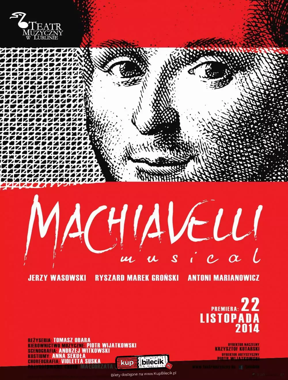 Ten prowokujący obyczajowo i intelektualnie musical bazuje na genialnym tekście jednego z najwybitniejszych umysłów politycznych w historii Niccolo Machiavellego. Tym razem mistrz podstępu swój geniusz objawia nie w spiskach pałacowych ale w krotochwilnej historii traktującej o ludzkiej głupocie. Osią libretta musicalu jest intryga, do jakiej zostaje zaproszony zblazowany Machiavelli, który po podstępie doktora Calfucciego spędza wygnanie na grze w kości z miejscowymi. Inspiratorem całego zamieszania jest jego były uczeń Kallimach, który zakochał się w Lukrecji, córki byłej kochanki Machiavellego Sostraty, a żony zdrajcy Calfucciego. Podjudzony możliwością zemsty na swoim wrogu Machiavelli powraca do Florencji i od Sostraty dowiaduje się, że Lukrecja i Calfucci nie mogą mieć dzieci. W tym samym momencie plan stratega dojrzewa - pozorując niechęć zarzuca haczyk i nęci nadzieją na wyleczenie domniemanej bezpłodności Lukrecji za sprawą genialnego doktora, który posługuje się cudownym korzeniem mandragory. Podczas tajnego spotkania lek zostaje sporządzony, ale skuteczność kuracji okupiona ma być nieuniknioną śmiercią pierwszego mężczyzny, który zbliży się do Lukrecji po zażyciu przez nią cudownej mikstury. Dla powodzenia planu Calfucci godzi się na substytuta wybranego spośród florenckich włóczęgów... Nie będziemy zdradzać ani zakończenia sztuki, ani mnogości pobocznych wątków, w jakie obfituje musical Machavelli, polecamy go z całego serca wrażliwości i poczuciu humoru naszej szanownej publiczności, dla której takie nazwiska jak Jerzy Wasowski, Ryszard Marek Groński czy Antoni Marianowicz starczą za gwarancję jakości muzyki i słowa z jakich ostatecznie uszyty został spektakl. Warto jednak zaznaczyć, że - jak to w przypadku mieszanki o wzorcowych proporcjach melodyki, liryki i farsy, będącej znakiem firmowym Kabaretu Starszych Panów, songi z Machiavellego stanowią jakość samą w sobie, celnie komentując rzeczywistość, w sposób zadziwiająco błyskotliwy i aktualny.