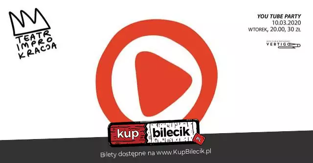 Improwizowany spektakl komediowy! Żadnego scenariusza- czysta improwizacja! Kolejna odsłona improwizowanych spektakli! Improkracja zagra dla Was zupełnie improwizowany spektakl komediowy. Tym razem do scen natchną nas filmiki z Youtube, które Wy wspólnie z nami będziecie wybierać podczas spektaklu. Nie wiemy jeszcze co zagramy na scenie, ale wiemy, że Wy i Jutub dostarczycie nam inspiracji! 100% impro, 100% funu, 100% zbuforowanego filmiku!