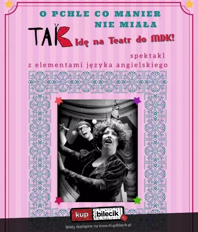 Spektakl inspirowany tekstem "Pchła Szachrajka" Jana Brzechwy. Oto ja, proszę Was. Wszystko wiem, wszystko mam, a jedyny mój brak, to brak manier. Będę żądać, a nie prosić, będę oszukiwać, będę mlaskać jedząc ciastka, będę konwersacje niegrzecznie przerywać. Czy to ładnie? Czemu nie? Pchła najlepiej wszystko wie. Lepiej niźli Francuz Jombo, co kręci zagadek kołem jak kolbą. Lepiej niż ten waćpan Kikut, co uczyłam go języków. Lepiej niż goście na balu, sztukę złych manier znam ja w każdym calu. Czy aby na zdrowie mi to wszystko wyjdzie? Rozwiązanie wraz z puentą tej bajeczki przyjdzie...