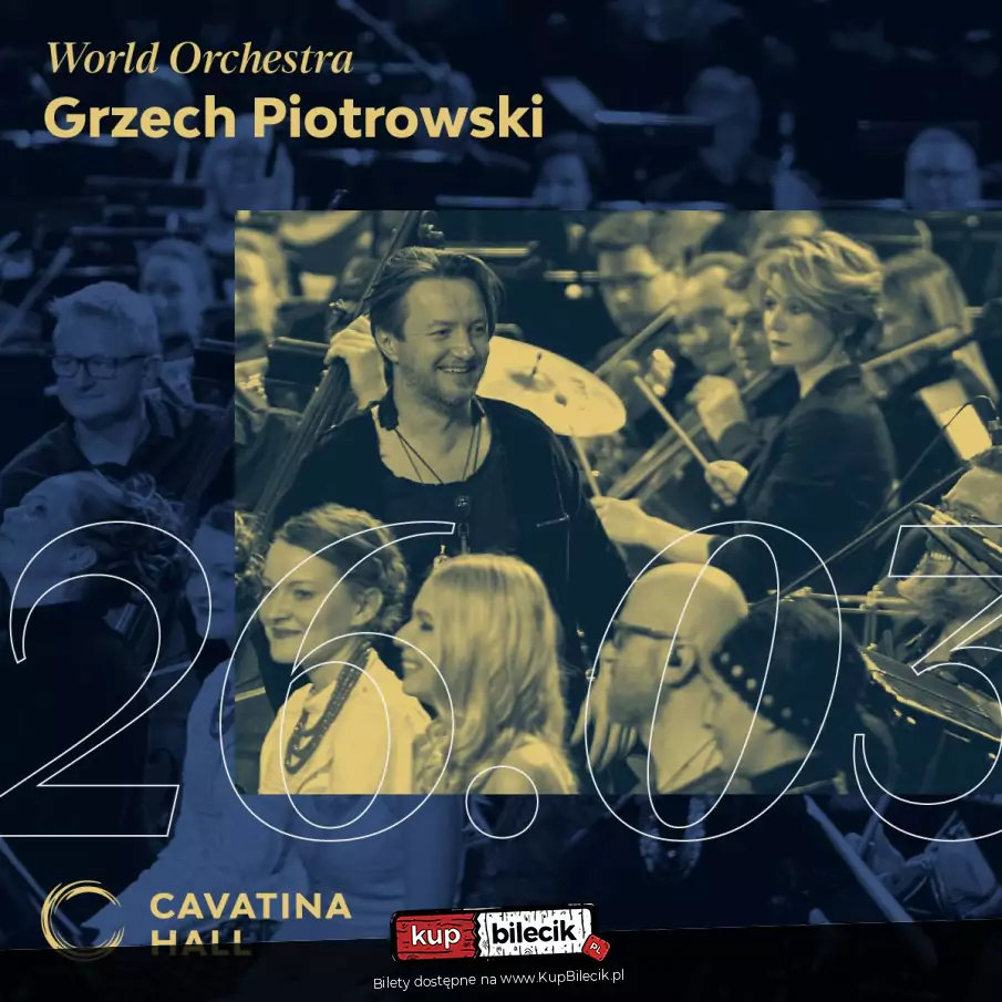 World Orchestra Grzecha Piotrowskiego wystąpi z najnowszym albumem "Gaia is coming". Na scenie zagrają wybitni artyści z Polski, Norwegii, Syrii, czy Senegalu. Ziemia tętniąca jednym pulsem, bijąca w rytm aktualnych trosk i zmartwień - to usłyszycie w Cavatina Hall.