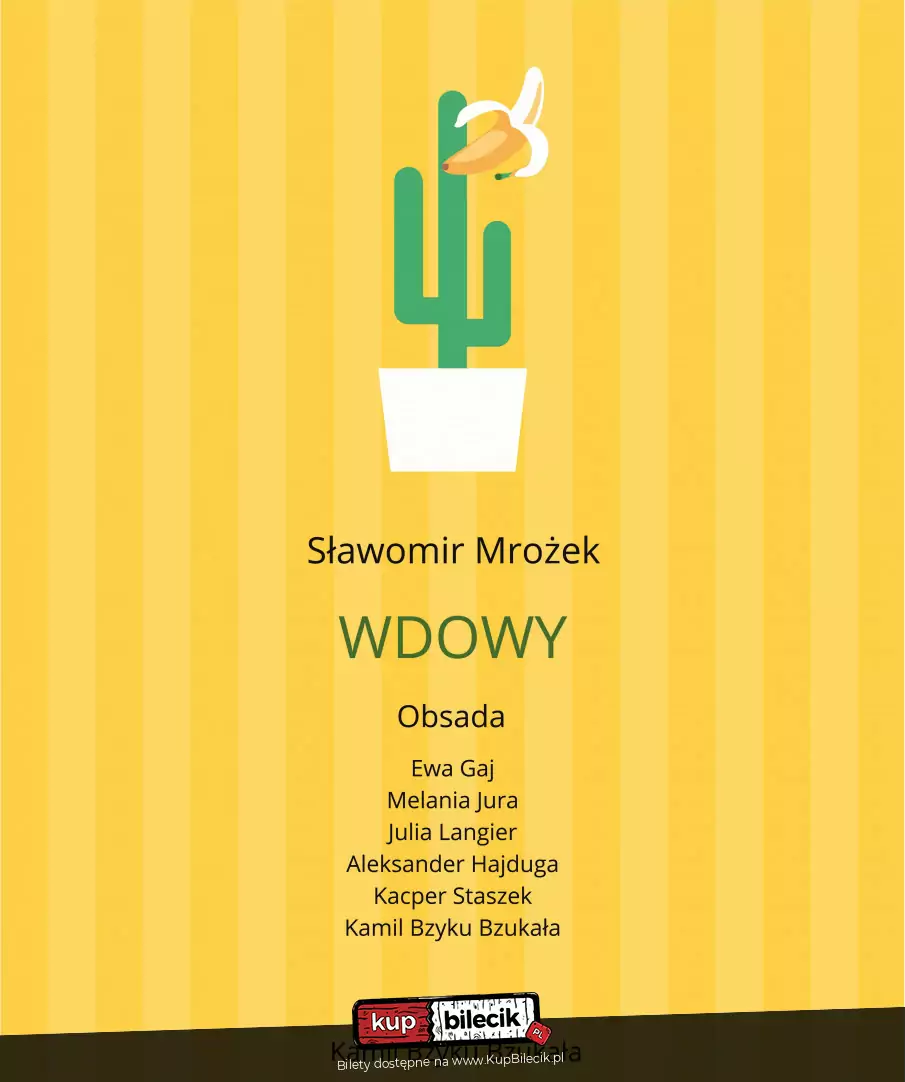 Zapraszamy na spektakl "Wdowy" S. Mrożka, w reż. Kamila Bzukały. Spektakl miał premierę w czerwcu 2019 roku i cieszył się niemałą popularnością! Zapraszamy zatem tych, którzy jeszcze go nie widzieli, ale również i tych, którym bardzo się podobał i chcą raz jeszcze przeżyć teatralną ucztę!