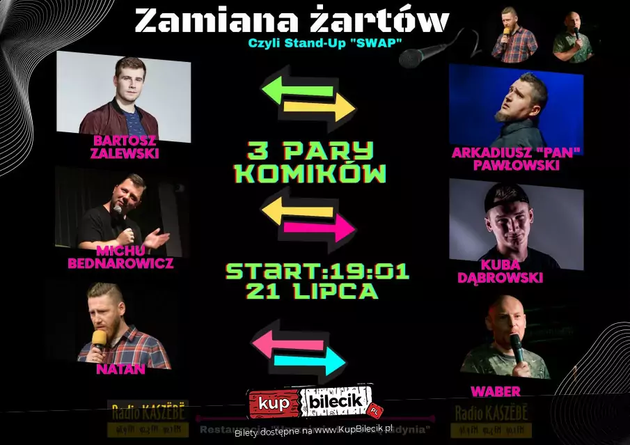 Stand-UP SWAP jest to nowa formuła w której komicy i komiczki wymieniają się swoimi żartami na scenie. Czy będzie śmiesznie? Zapewne tak. Niektóre zamiany żartów przejdą do historii, a niektóre zostaną zapomniane jak zeszłoroczny śnieg.