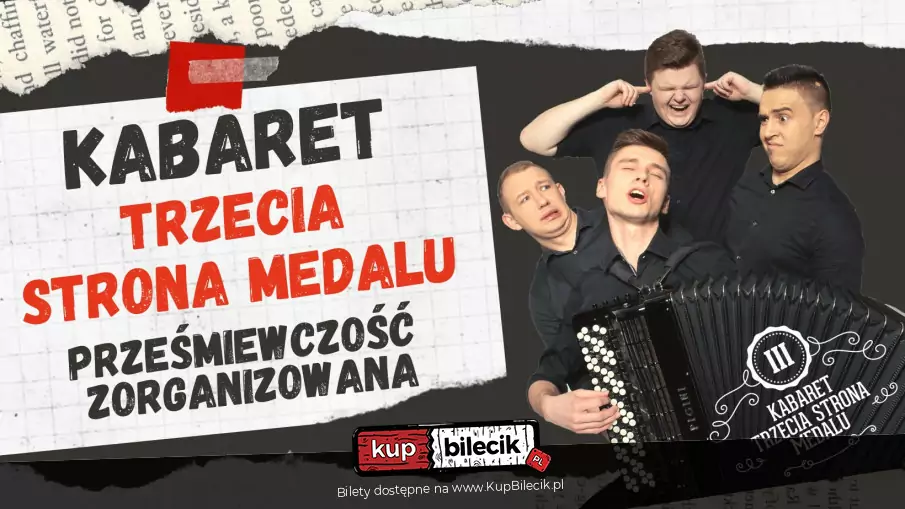 Kabaret Trzecia Strona Medalu został zainicjowany w 2011 w Przemyślu, a od 2013 roku związany jest z krakowską sceną kabaretową. To paczka facetów o satyrycznym i prześmiewczym podejściu do życia, których zainteresowanie przerodziło się w pasję. To mieszanka młodości i doświadczenia przy akompaniamencie akordeonu. Obrońcy piosenki kabaretowej. Uczestnicy ponad 80 festiwali kabaretowych, laureaci ponad 70 nagród i wyróżnień, w tym zwycięzcy Ryjkowego Konkursu na Boczku 2022. Twórcy hitu "Baby dają w szyję":